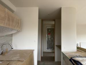 内部のクロス張替え・床はフロアタイルを施工・室内建具は塗装と丁番と取手の交換・設備(キッチン・トイレ・ユニットバス・洗面台)の交換・24時間換気のための換気扇と給気口を新設しました。