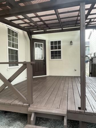 外部は屋根の洗浄・外壁や樋などを再塗装・外構(砕石敷・防草シート・ウッドデッキの塗装)で新築のように見違えています。
