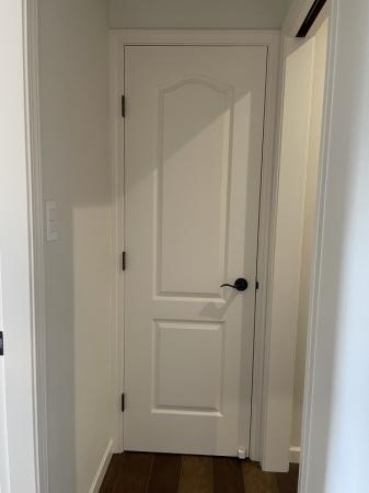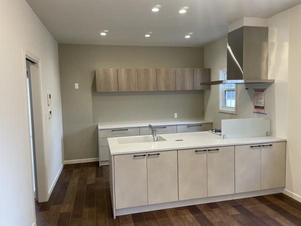 内部のクロス張替え・床はフロアタイルを施工・室内建具は塗装と丁番と取手の交換・設備(キッチン・トイレ・ユニットバス・洗面台)の交換・24時間換気のための換気扇と給気口を新設しました。